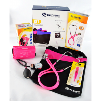 Kit Acadêmico com esfigmomanômetro, estetoscópio e Termômetro da Incoterm.